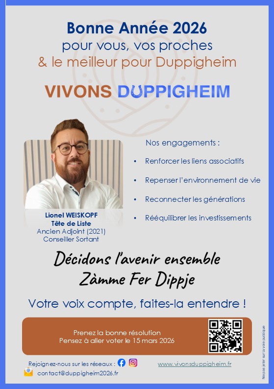 En 2026, faisons de Duppigheim un village qui nous ressemble et qui nous rassemble.